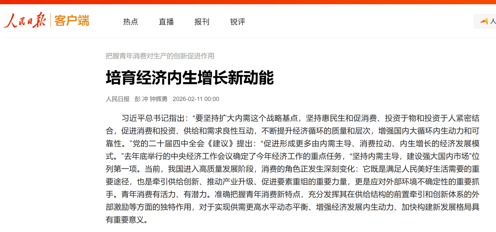 近日,我校管科学院彭冲教授在《人民日报》理论版发表题为《把握青年消费对生产的创新促进作用 培育经济内生增长新动能》的文章。该文章被求是网、人民网、光明网等20多家媒体转载。文章立足马克思主义政治经济学基本原理,紧密结合党的二十届四中全会精神和中央经济工作会议部署,系统阐释了青年消费在优化人力资本配置、加速技术迭代、激活数据要素等方面的创新促进作用,为当前“促进形成更多由内需主导、消费拉动、内生增...