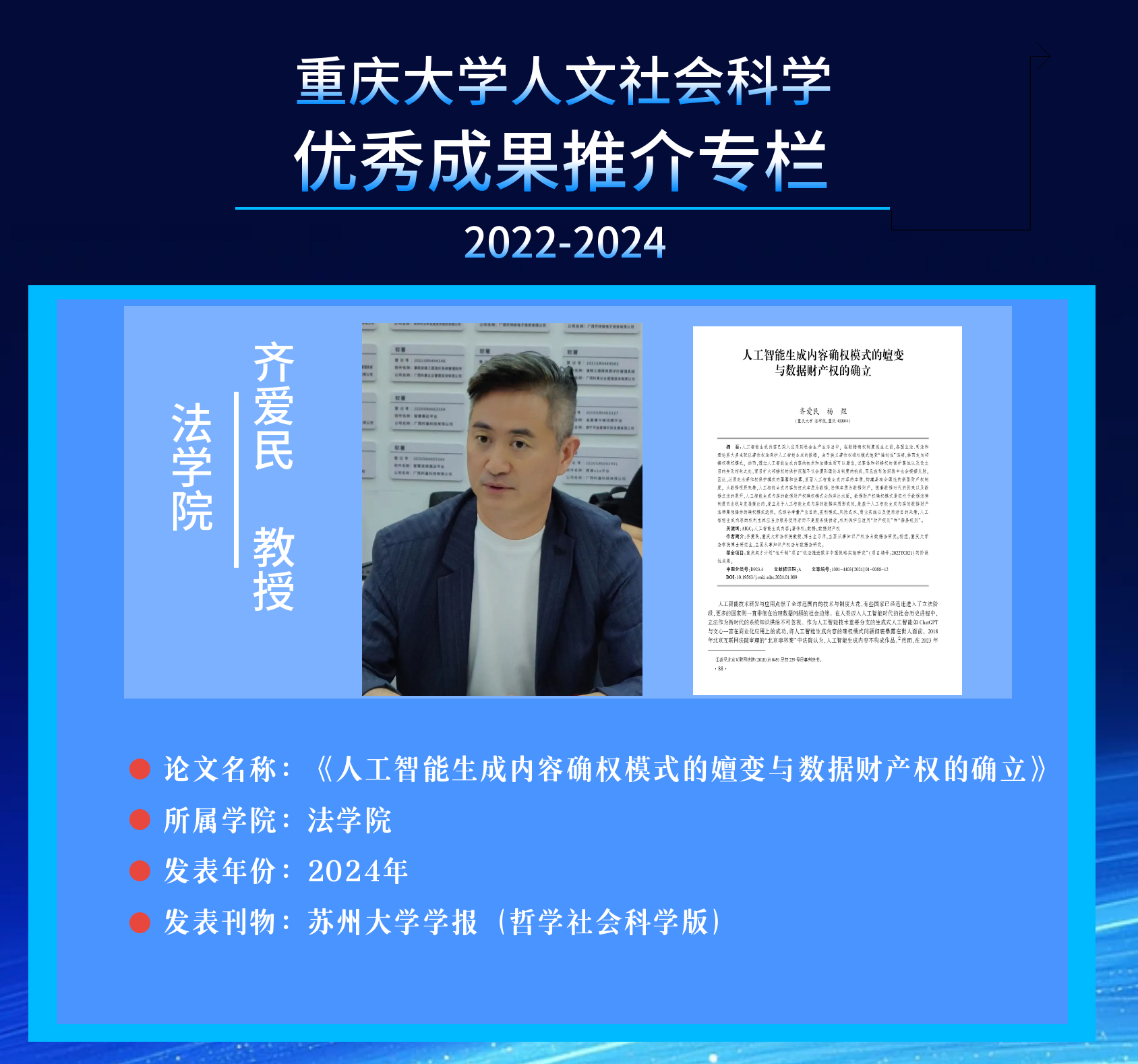 法学、民族学:齐爱民《人工智能生成内容确权模式的嬗变与数据财产权的确立》