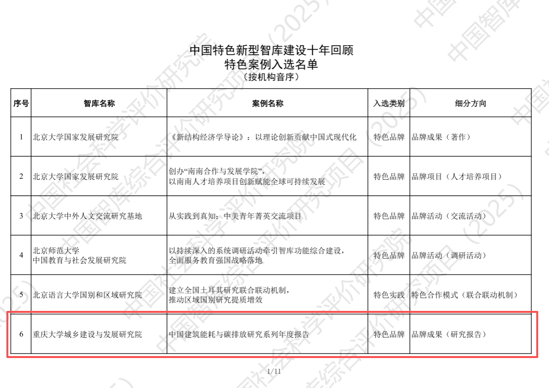 近日,我校重庆大学可持续发展研究院、重庆大学城乡建设与发展研究院、重庆大学出版科学研究所、城市化与区域创新极发展研究中心4个智库入选中国智库综合评价研究项目2025年AMI智库。同时,重庆大学城乡建设与发展研究院入选中国智库特色案例。