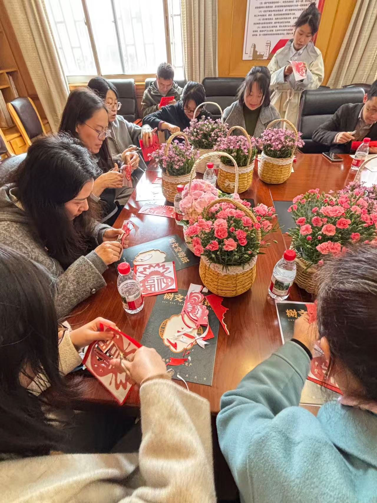 为庆祝“三八”国际劳动妇女节,传承中华优秀传统文化,丰富职工精神文化生活,社科处、期刊社工会于3月6日在办公楼216会议室举办“巾帼绽芳华 奋进新征程——三八妇女节剪纸特色活动”。活动特别邀请重庆大学艺术学院副教授况成泉现场教学指导。况成泉老师讲解了剪纸的历史与技法,并现场演示折、剪技巧,普通红纸在其指尖化作精美图案。