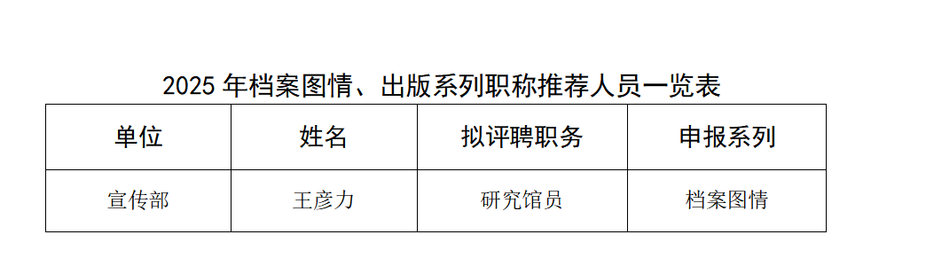 根据学校《关于开展2025年专业技术职务评聘工作的通知》(重大校〔2025〕102号)要求,经个人申报、基本条件审核等程序,2025年档案图情、出版系列学科组职称评审委员会于11月7日进行了会议评审,现将结果公示如下: